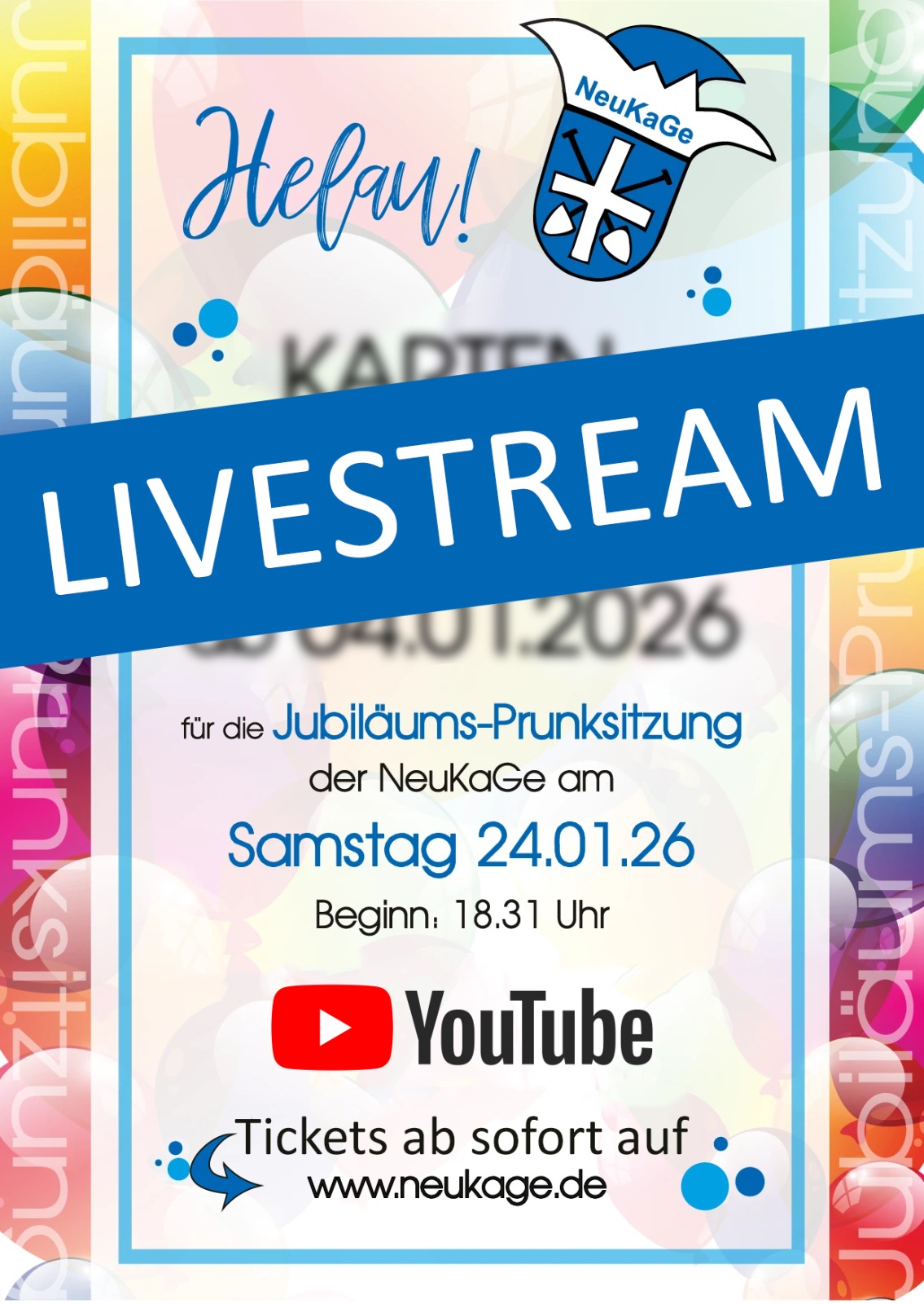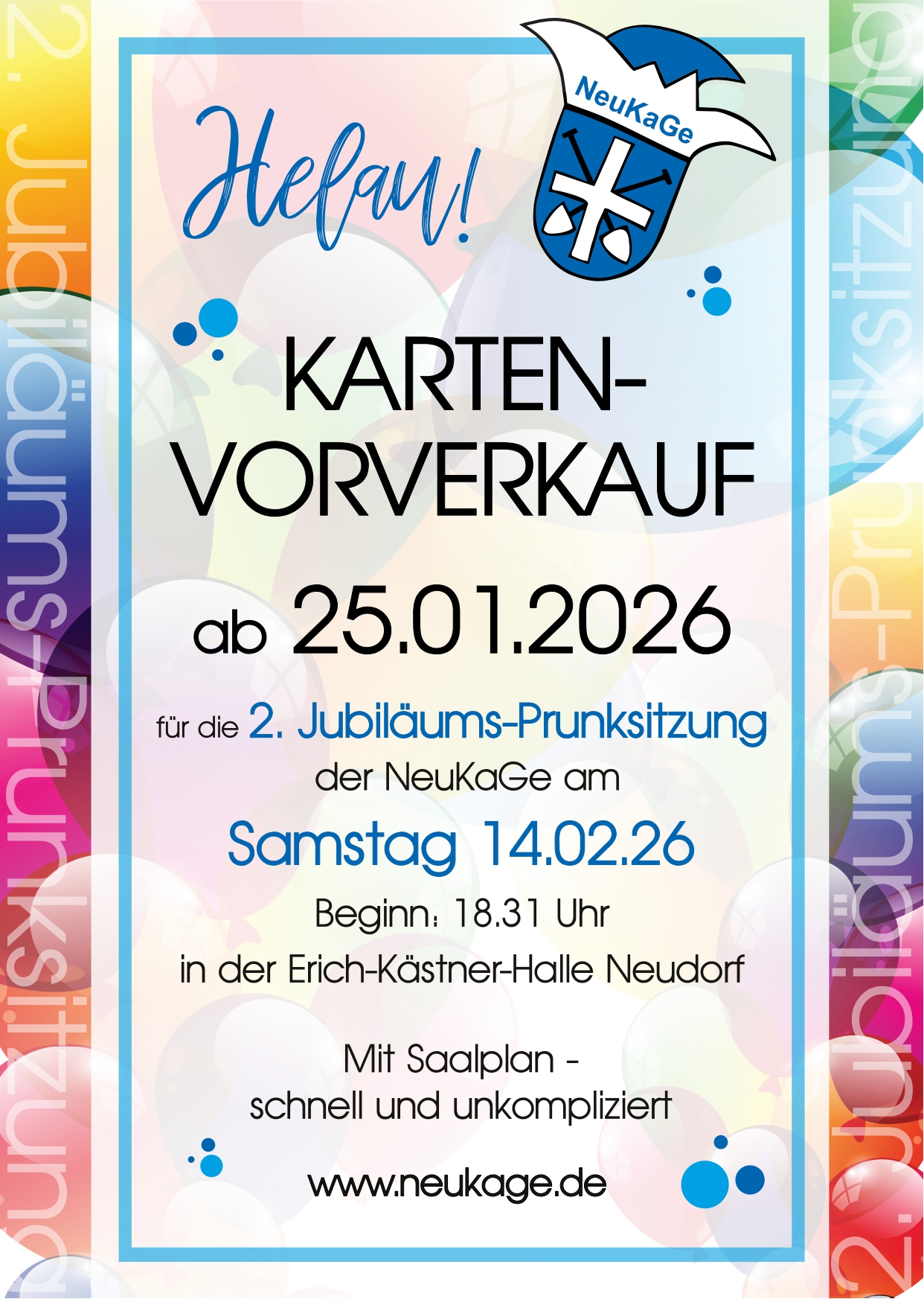 Vorankündigung: Am 14.02.26 wird die 2. Jubiläumsprunksitzung stattfinden. Der Kartenvorverkauf hierzu startet am 25.01.26 über diese Homepage!